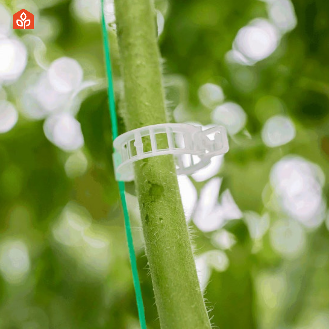 Specially designed to ensure high tying strength, tomato clips help significantly reduce labor costs by connecting plants to the trellis with a simple click, ensuring the clip is securely fastened.