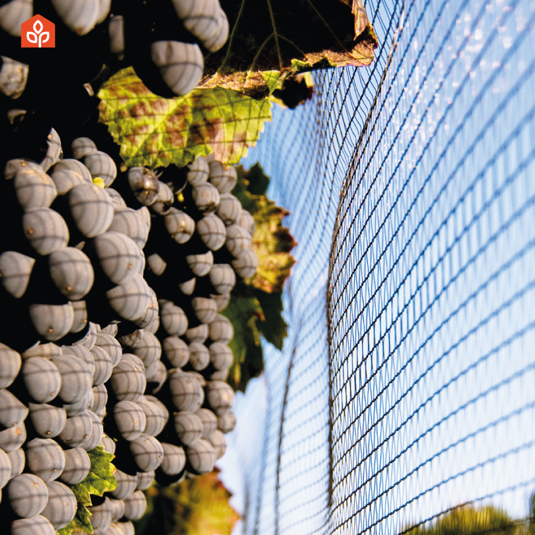 Mesh with reinforcements in its construction that is used to protect crops from damage caused by hail.